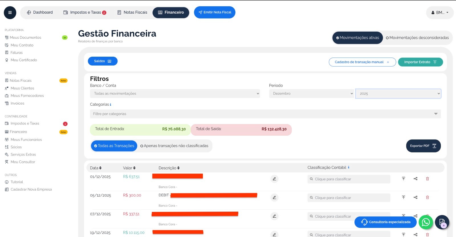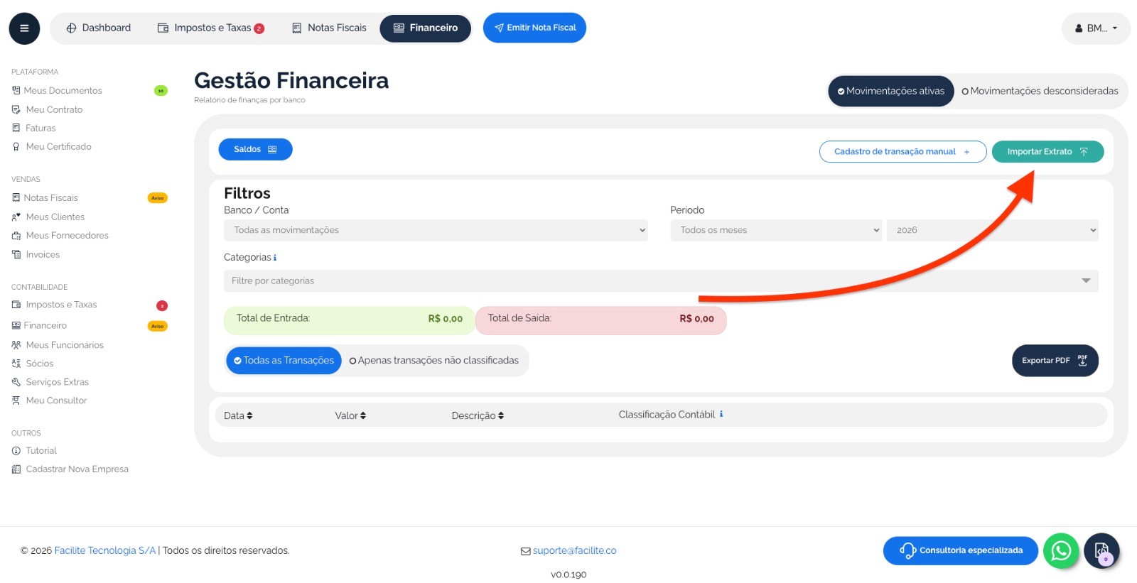 Após esses passos, a tela da Facilite vai exibir todas as transações financeiras realizadas pela sua empresa. Dessa forma, você terá uma visão objetiva e precisa sobre o fluxo de transações, permitindo que o processo contábil seja realizado de maneira mais eficiente.